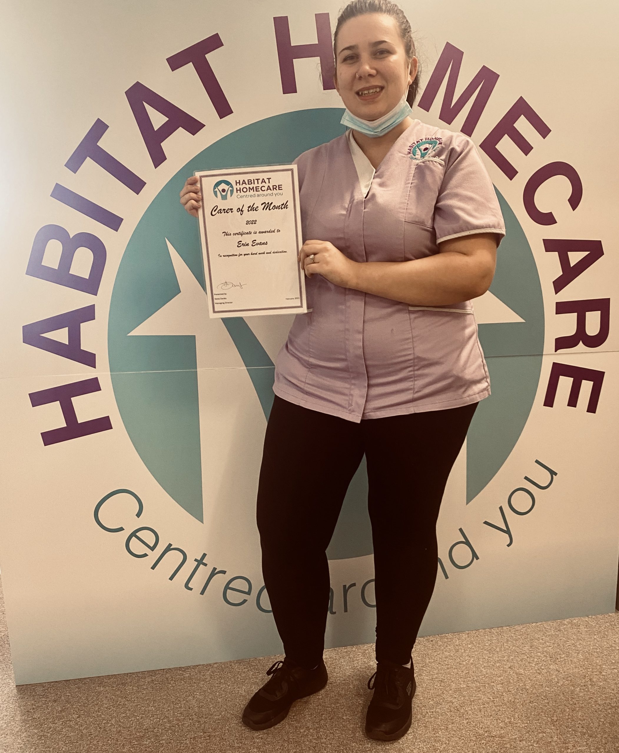 Habitat Homecare’s Managing Director Steve Davies is pleased to announce their February ‘Carer of the Month’ award goes to Erin Evans.
